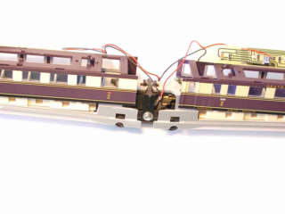 - die Verbindung von der B-Platine (das ist die oben linke Platine im b-Wagen, auch zu erkennen an den fehlenden Entstörbauelementen für den Motor -blaues Ding auf der oberen rechten Platine- ) zum Motor ablöten. Die Verbindung von der A-Platine zum Motor bleibt bestehen.